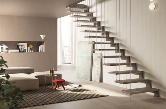Lynar Soft is an iron staircase with a side structure made to measure according to the needs of the design and the aesthetic demands of the customer who has maximum freedom of configuration and the possibility of customizing materials and finishes to create unique and inimitable compositions.