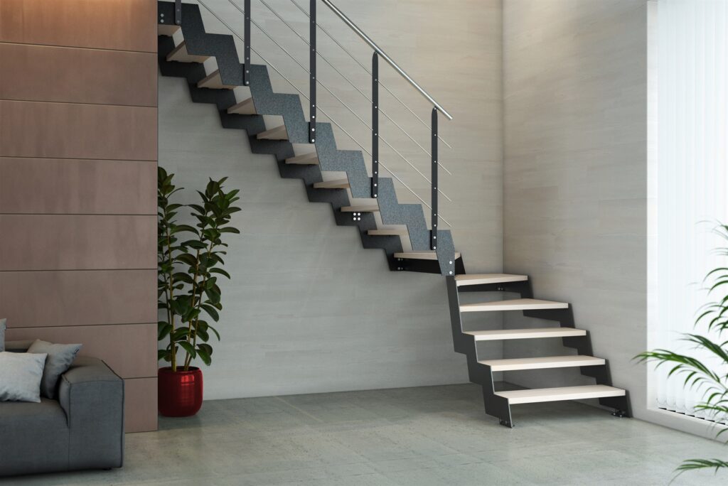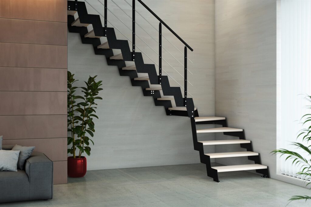 One of the elements which greatly define the project is the design of the structure, which sets Lynar Soft apart from most iron stairs. The sloping design of the stringers (made of stainless or painted steel) comes from a reinterpretation of the classic “knee shape” to change the overall aesthetic. The ascending section, instead of being perfectly vertical, is slightly tilted. The result is a light and slim composition, characterized by soft and continuous lines, absolutely unprecedented in the field of indoor iron stairs (Lynar Soft is in fact protected by international patent).